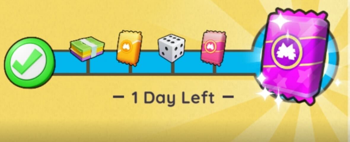 In order to be eligible for the final reward, players must fully fill the bar, which is indicated by a blue circle. The most popular final rewards is the Purple Pack, but could also have Rolls, or Monopoly Money.